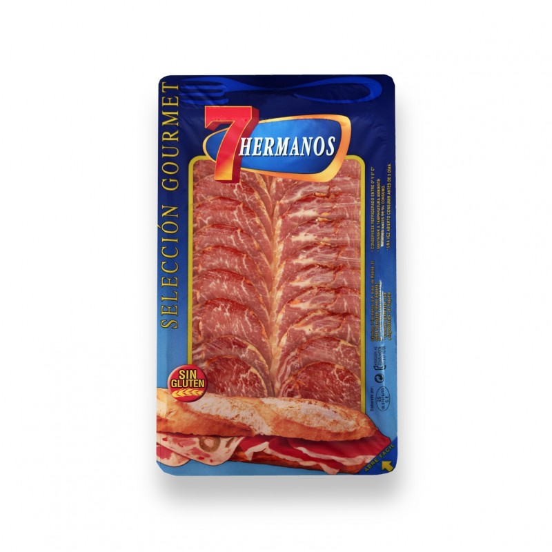 Filet de porc ibérique, coupé en tranches et emballé sous vide. Produit sans gluten.