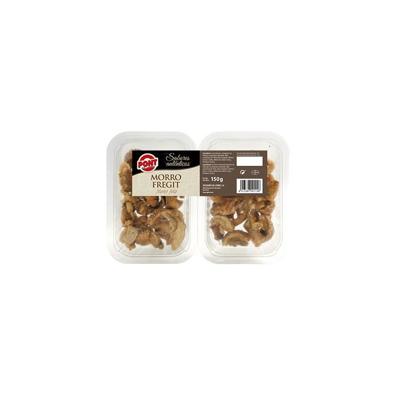 Museau de porc frit de façon traditionnelle, avec seulement trois ingrédients (viande de porc, huile végétale et sel). Idéal comme snack et appéritif.