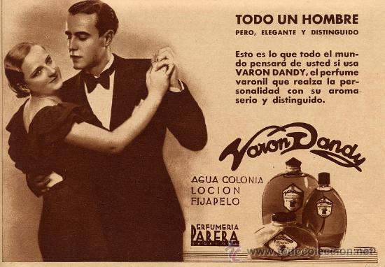 Los anuncios de la época de cada uno de estos perfumes vienen marcados por la situación, política, social y cultural del momento, testigos de la historia de España. Por ejemplo en las fragancias masculinas destaca el tono varonil, que hoy en día nos chocaría.